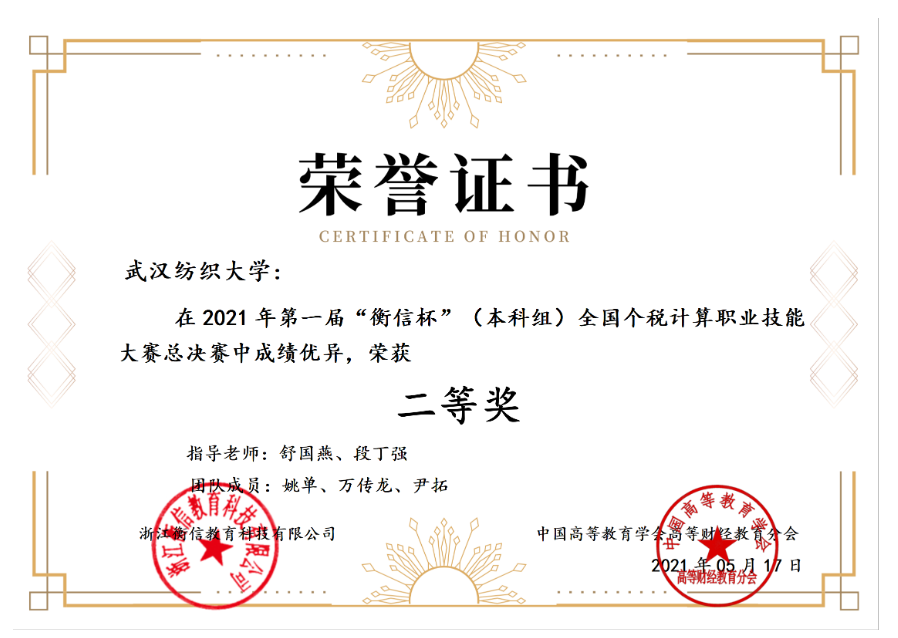 在全国总决赛中,威廉希尔中文官网姚单、万传龙、尹拓同学在舒国燕、段丁强老师的带领下,与来自全国各地的138所学校、近370支决赛队伍、一千多名参赛选手进行激烈角逐,最终取得全国总决赛二等奖的优异成绩。舒国燕、段丁强老师被评为“优秀指导老师”。另外两组选手(队员:朱宝、李佩、汪响、邓竣豪、李梦馨、姜雯青)荣获华中赛区三等奖。个税在国家重大政策中持续发挥作用。新一轮个税改革涉及千家万户利益,对完善收入分配、增加居民收入、扩大消费发挥了重要作用,成为推进国家税收治理体系和治理能力现代化的成功实践。个人所得税体系有效发挥筹集财政收入、调节收入分配和稳定宏观经济的作用,并不断夯实社会治理基础。