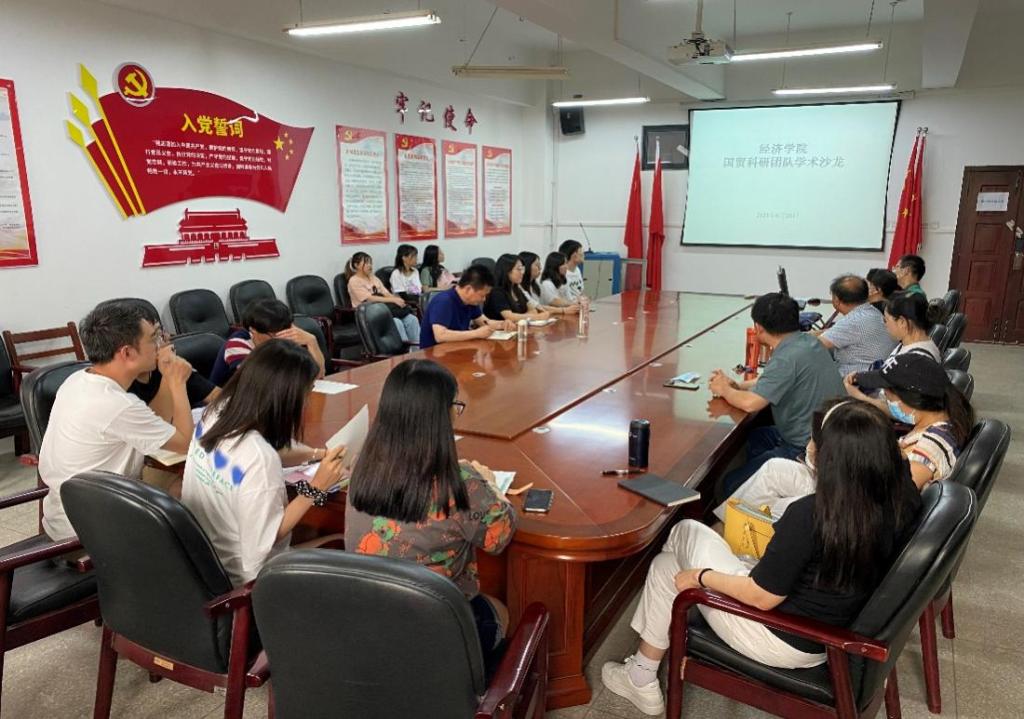 此次学术沙龙由国际贸易科研团队负责人叶茂升副教授主持,该方向团队中的科研骨干石小霞博士、史乐来博士结合自身的研究课题及相关成果进行了专题汇报,并就选题方向、技术路线、研究手段及方法等进行了精彩分享。国际贸易学科方向团队全体教师、在校部分研究生、本科生参加了学术沙龙活动。