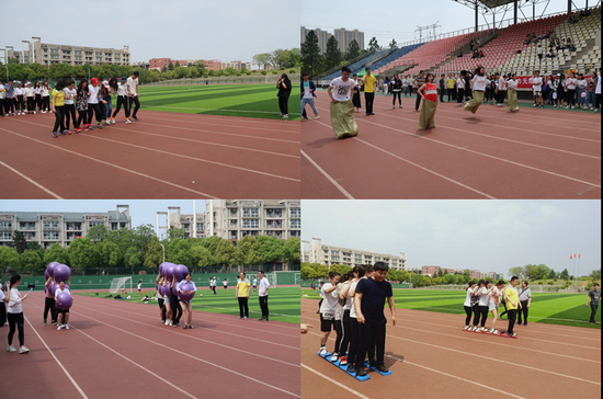 学院书记毛长文宣布威廉希尔中文官网第一届师生运动会开幕后,比赛正式开始。本次运动会分为教师团体项目、学生团体项目、师生混合团体项目以及个人趣味项目。在八人九足、协力竞走、袋鼠跳和同心协力项目中,师生齐心协力,高度配合,共同完成比赛;在教师50米和学生4*100米迎面接力中,师生们在跑道上奋力奔跑,勇于拼搏,在最后的师生拔河比赛中,参赛师生拼尽全力,双方力量互相抗衡,现场同学也高喊“加油、加油”,为代表队呐喊助威,师生们热情高涨,一片欢声笑语。
