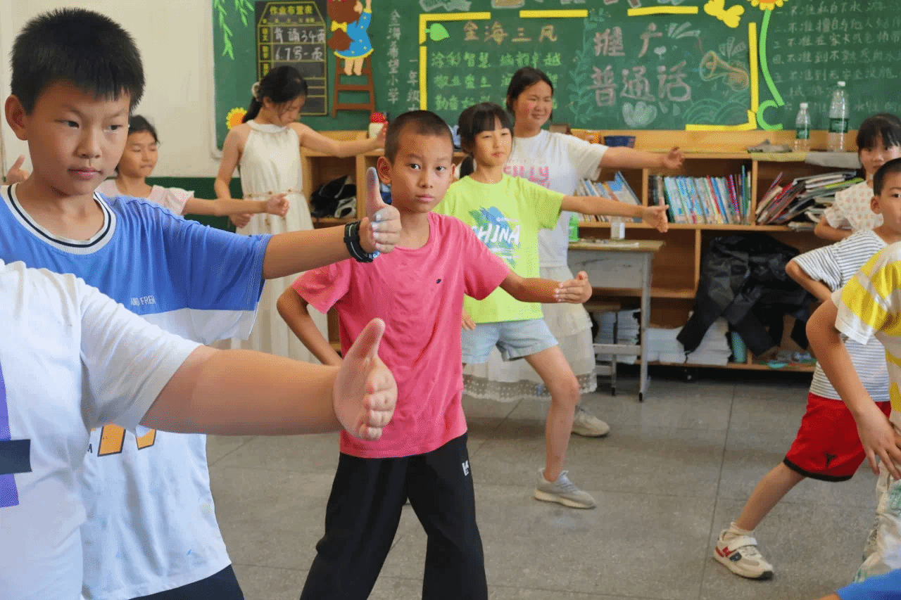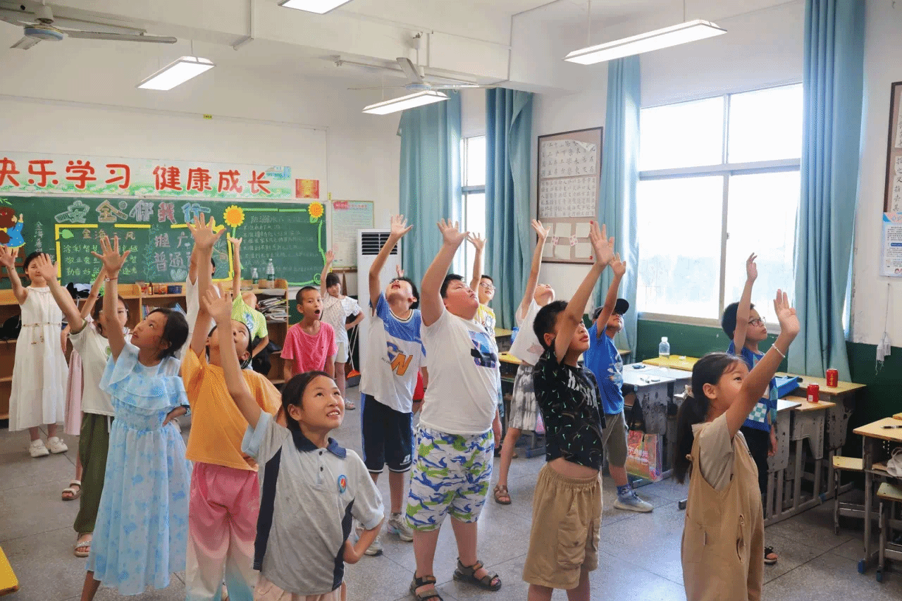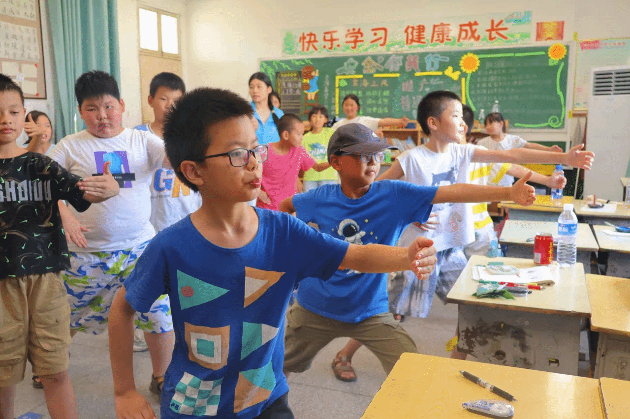 7月9日下午,威廉希尔中文官网,williamhill中国官方网站“乡育乡伴,‘经’彩一夏”支教队在湖北省鄂州市梁子湖区涂家垴镇金海希望小学点位教室内,开展“橙光跃动:活力运动促健康行”主题活动。通过打破“运动必在操场”的固有思维,支教队员将广播体操与太极拳巧妙融入室内空间,让方寸教室变身传递健康活力的舞台。