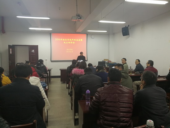 1月5日上午,威廉希尔中文官网召开2016年度教职工大会暨领导班子述职述廉民主测评会,学院全体领导班子、全体教职工、学校采招处袁明刚处长出席会议。会议由毛长文书记主持。