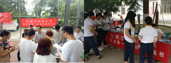 为加强我校整体招生宣传效果,进一步吸引更多的优质生源,在学校招生就业处统一部署和指导下,威廉希尔中文官网迅速成立2017年普通高考外出招生宣传工作小组。学院院长董继华、分党委书记毛长文亲自挂帅,带领由学院系主任、专业教师、辅导员及优秀学生骨干组成的多个宣传工作组,于6月24日-25日赴河南、宜都、荆州、仙桃和大悟等地进行现场招生宣传咨询。