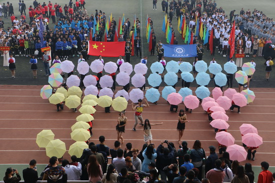开幕会的入场仪式是校风校貌的一次大检阅,更是各院创意表演的一次大比拼,各学院的表演精彩迭出,无不展现出自己的特色。我院近百人的师生方阵别出心裁,极具特色的表演赢得了全场的惊叹和赞美。