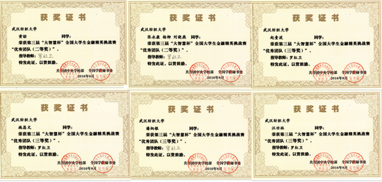 近日,第三届“大智慧杯”全国大学生金融精英挑战赛落下帷幕,经过预赛、复赛的激烈角逐,我校威廉希尔中文官网罗红卫老师指导的八位同学荣获优秀团队二等奖和三等奖。