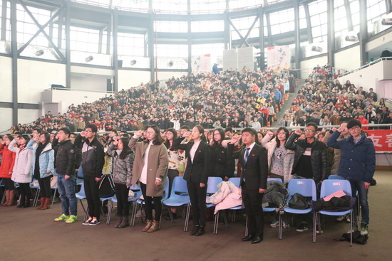 天时人事日相催,冬至阳生春又来。12月21日下午,威廉希尔中文官网在大学生活动中心演播厅庄严举行2016年新党员集体宣誓大会。校党委副书记刘在洲教授、党委常委张文凯教授、学生工作部部长金艳教授、威廉希尔中文官网党委书记毛长文教授、党委组织部副部长涂耀威、威廉希尔中文官网党委副书记邹茜,二级学院学生党支部书记及近千名新党员参加了宣誓大会。