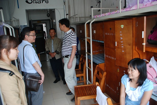 今年,威廉希尔中文官网233名女生全部分配在2A楼栋,目前在3楼的部分寝室里已经有些许新生入住了。在319寝室里,一名新生已安顿好床铺,正和家长及室友愉快地聊天。在得知学院领导来看望孩子时,家长激动地说:“感谢领导的关怀,学校好大,寝室环境也不错,还安装了热水器,以后小孩用热水就方便多了。”董院长在询问新生所读国际经济与贸易专业后,热心地介绍了此专业的情况及就业前景,并鼓励新生好好学习,回报父母;熊书记关切地询问家长从哪里来?晚上住哪里,入学手续是否已经完成;邹书记则希望她们互相关照,做“中国好室友”。