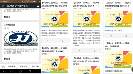 学院官微全新改版升级,建立了自动回复、学院介绍、专业介绍和迎新菜单。在迎新菜单里,新生既可以根据学院概况、学生教育模块提前了解学院概况、师资水平和专业特色,也能通过迎新工作模块了解到学院的迎新动态和我们统计的高频问题。同时我们每天推送迎新速递,即“幸福纺大,圆梦经院----经院网上迎新”各篇,目前我们已推送学院师生寄语新生篇、教师风采篇、专业特色篇、学院成果篇、分团委学生会篇、实习实践篇等,近期我们还会陆续推送优秀学子风采篇、新生入学攻略篇、纺大学霸说、大学防骗第一课、花样社团篇等系列报道,新生们只需通过关注威廉希尔中文官网,williamhill中国官方网站公众号,就可以提前全方位知晓学院方方面面的信息,官微受到了新生们的广泛关注与热议。