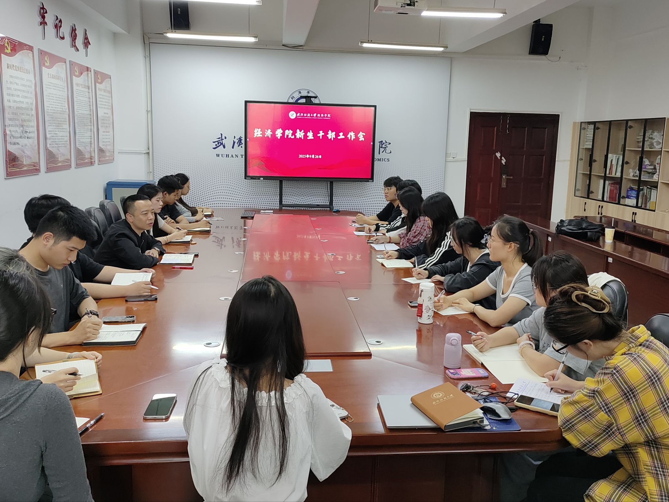 为加强研究生组织建设,畅通交流反馈渠道,9月26日中午,学院在崇德楼315会议室召开研究生骨干、新生班委集体座谈会。会议由学院研究生会负责人主持,学院研究生辅导员、研究生会全体成员及研一新生全体班委参加座谈会。