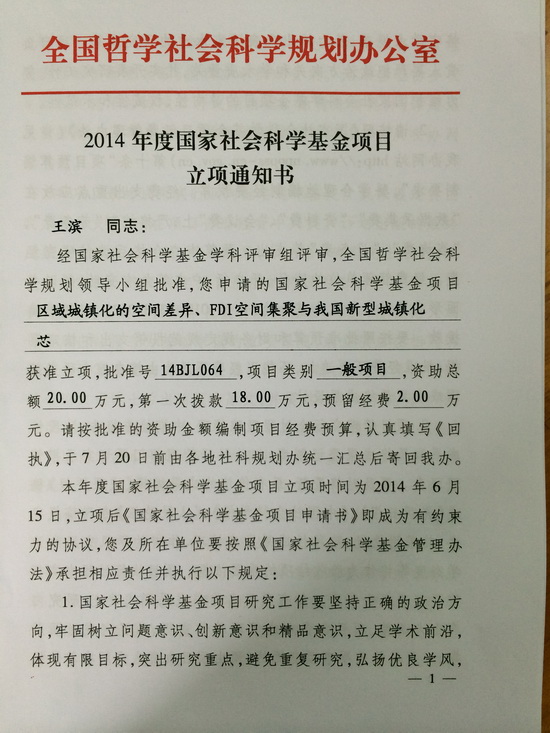(我院王滨博士获国家社科基金立项)