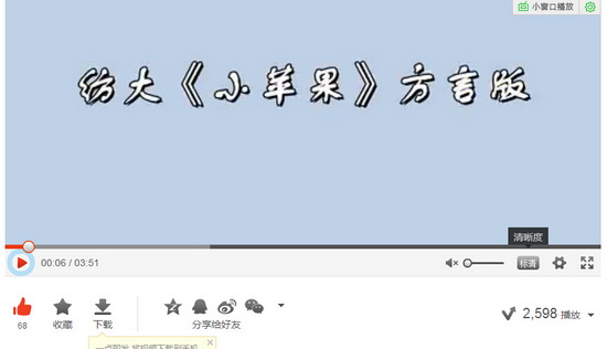 截至11日早上6点,微博已被阅读5735次,优酷网视频播放2598次。这部方言版《小苹果》汇集了浙江、广东等8种各地方言,诙谐幽默,学校大门、图书馆、大学生活动中心等标志性建筑也得到了集中体现。