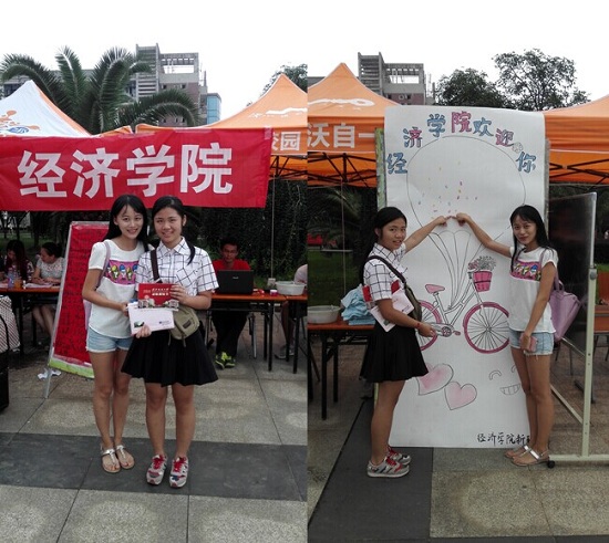 得知这一消息后,迎新点的同学都好奇地围观上来。“高考填志愿时,表姐给我了很多的建议,使我充分了解了威廉希尔中文官网的很多信息,因为我俩都比较喜欢经济方面,而我对威廉希尔中文官网的师资力量也抱有很大的期待,所以我毫不犹豫地报考了威廉希尔中文官网。而得知被录取的消息后,一直悬着的心也终于落了下来。”彭琳惠兴奋地说,“还没来校就已观看了学长学姐拍的方言版《小苹果》,很有趣,学长学姐真是萌翻了。不过要是有我贵州家乡的方言就好了,呵呵。”