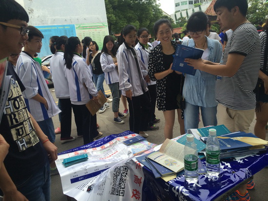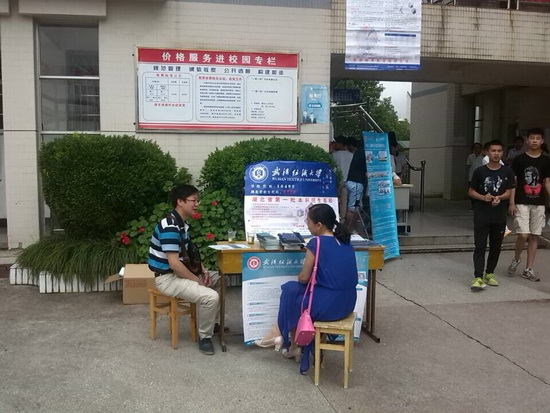 今年,我校正式进入湖北省第一批本科招生。为加强我校整体招生宣传效果,进一步吸引更多的优质生源,在学校招生就业处统一部署和指导下,威廉希尔中文官网迅速成立2015年普通高考外出招生宣传工作小组。分党委书记熊少平亲自挂帅,由系主任、专业教师、辅导员、网络中心老师组成六个宣传工作组于6月23日-26日赴宜昌市宜都、枝江等六地进行招生宣传咨询。