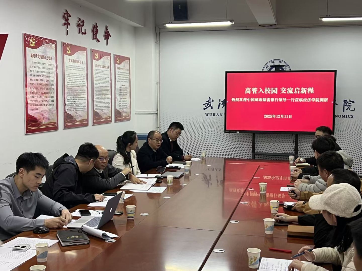 李正旺对中国邮政储蓄银行来校交流表示热烈欢迎,他简要介绍了校史校情和学院办学发展情况。他表示,学院高度重视学生就业工作,将校企合作作为提升人才培养质量、拓宽就业渠道的重要抓手。此次邮储银行高管进校园,希望能搭建就业交流平台,为学生未来发展提供更多资源支持。随后,相关辅导员分别介绍了学院本科生、研究生毕业生规模、结构和就业进展情况。