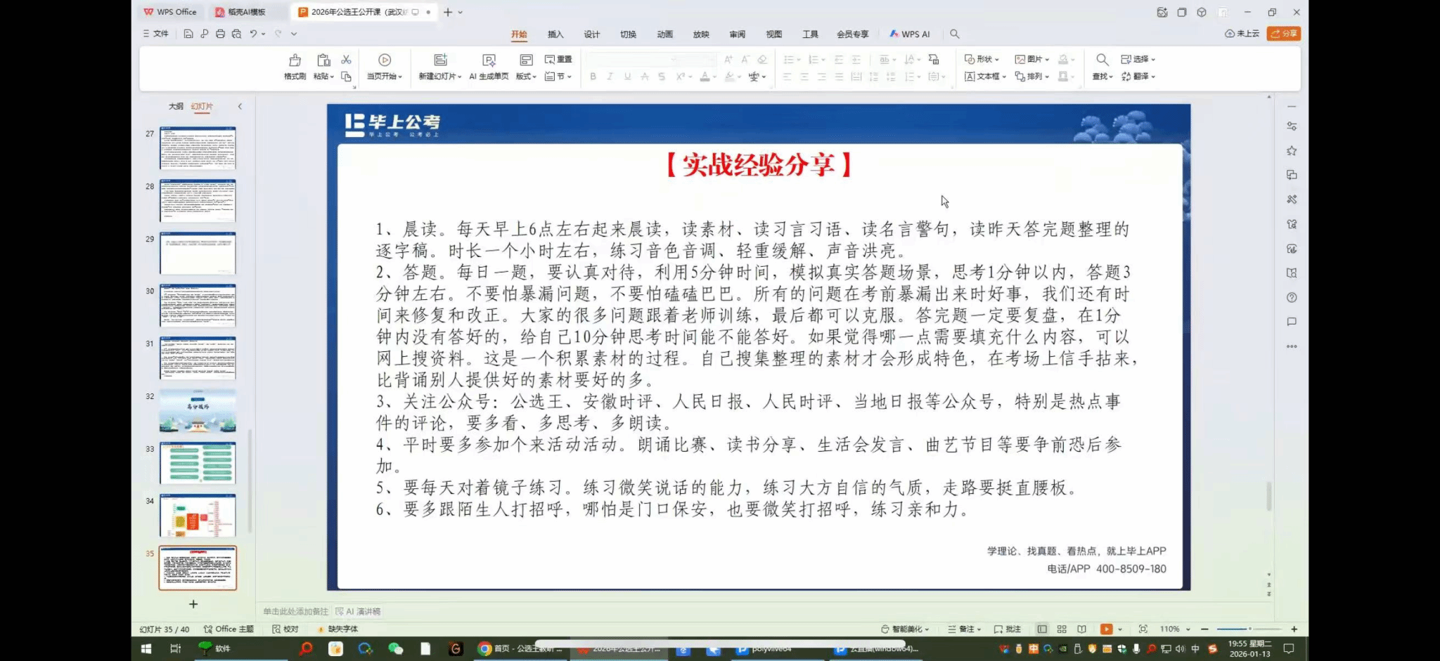 当前正值公职类岗位与央国企、事业单位招聘备考关键期,为帮助学子精准把握面试核心要点,系统提升应试能力,覆盖公务员、央国企、事业单位等多就业赛道需求,1月13日晚,学院特邀毕上公考资深讲师夏犇开展线上面试专题讲座。众多备战各类公职及央国企岗位的学子齐聚云端,专注参与这场兼具理论深度与实战价值的备考指导活动。
