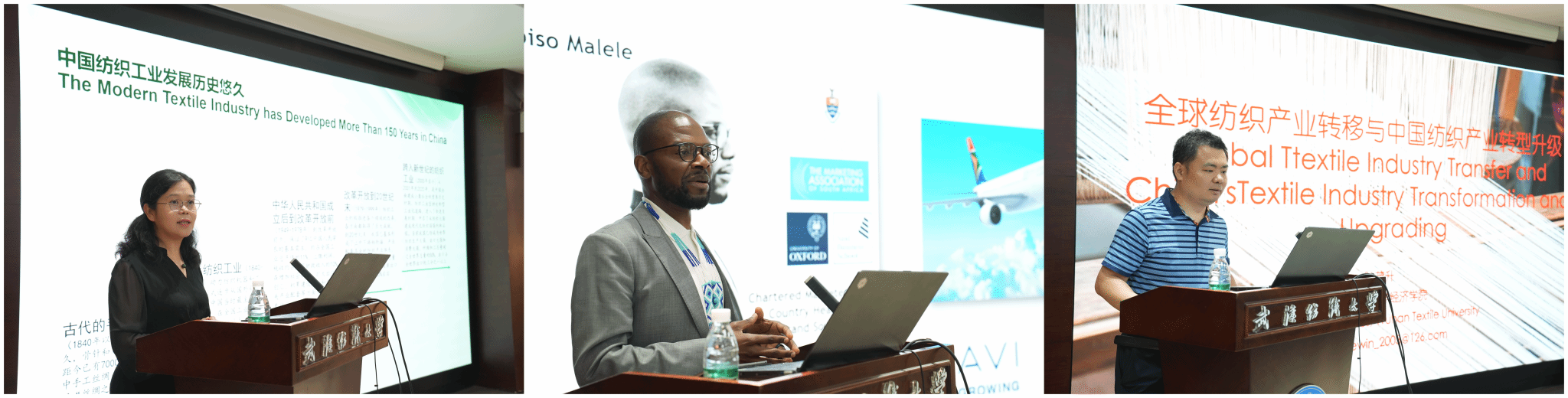 开幕式后,中国纺织工业联合会产业经济研究院院长华珊、品牌南非中国区负责人马莱勒·世皮萨·崔若、威廉希尔中文官网教授叶茂升分别围绕本届论坛的主题进行主旨报告,分享最新的研究成果、前沿技术及深刻见解。此外,本次论坛还专门设置了“‘一带一路’倡议下中国与发展中国家纺织品服装产业合作机遇与挑战”“中国纺织服装产业发展成功经验及其对非洲国家的启示”“技术创新与产业转型升级在纺织品服装产业中的实践”“中非纺织品服装产业国际产能合作中的风险管理与市场准入问题”等四个专题,品牌南非研究部经理Lefentse Nokaneng、湖北万里防护用品有限公司董事长刘万里、武汉联好防护用品有限公司董事长夏新明及威廉希尔中文官网专家学者等与会人员围绕专题开展圆桌讨论,促进跨国界、跨学科、跨领域的思想交流与合作,共同探讨纺织产业未来发展趋势与面临的挑战。