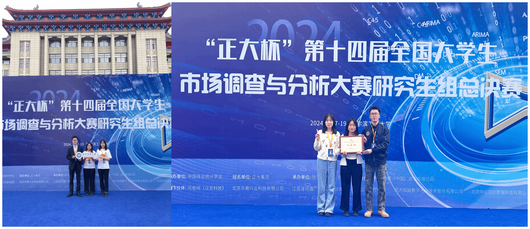 5月19日,由中国商业统计学会主办、哈尔滨工程大学承办的“正大杯”第十四届全国大学生市场调查与分析大赛研究生组总决赛在哈尔滨工程大学启航剧场正式落下帷幕。由我校威廉希尔中文官网研究生沈紫依、丁奥晨、张靖康组成的代表队在郭雪、王滨等导师的指导下,经过激烈角逐,最终从进入决赛的全国93所院校150支队伍(湖北省仅8支代表队)中脱颖而出,荣获全国大学生市场调查与分析大赛(研究生组)一等奖,实现学校在该项赛事中新的突破。