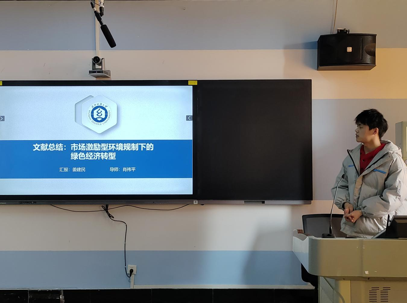 论坛上,五位主讲人依次以PPT的形式展示了近期研读的学术成果。魏力源同学以《企业金融化文献综述》为题,系统梳理了企业金融化的内涵、动因、经济后果等方面的相关文献,总结现有研究成果并对未来研究方向提出展望。姬凯翔同学以《中国式现代化视域下数字经济的共同富裕效应:方法与证据》为题,明晰了数字经济在中国式现代化进程中推动共同富裕的作用机制及实质证据,对后续深入探究相关领域研究方向有了新启发。姜建民同学以《市场激励型环境规制驱动下的绿色经济转型》,归纳了现有研究中关于市场激励型环境规制和绿色经济转型之间的关系、实现路径及影响因素的观点,并指出了当前研究的不足与未来的研究方向。季冬梅同学以《增值税留抵退税对企业全要素生产率的影响研究文献综述》为题,系统总结了增值税留抵退税与企业全要素生产率关系的相关研究,涵盖影响机制、实证结果及尚存的研究空白与未来方向。王晨瑜同学以《金融科技的经济稳定器作用:金融加速器理论的视角》为题,从金融加速器理论出发,分析了金融科技在调节经济波动、降低金融市场摩擦方面作为经济稳定器的具体作用,并阐述了相关研究成果。每位主讲人都展现出自信从容的精神面貌,以积极的求知欲和严谨的态度诠释了勇于创新、追求卓越的研究生精神。
