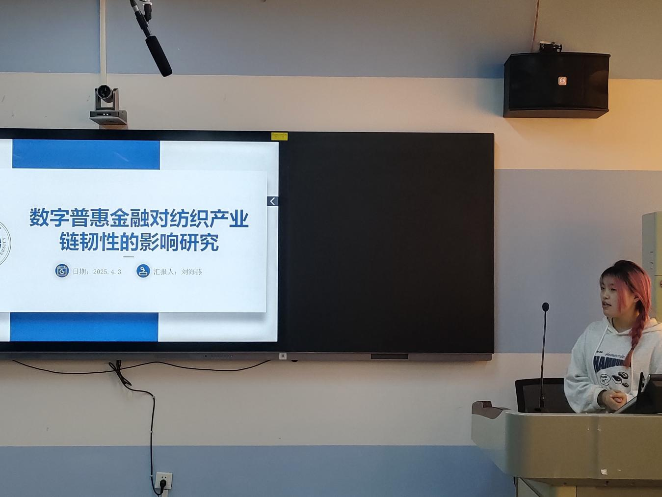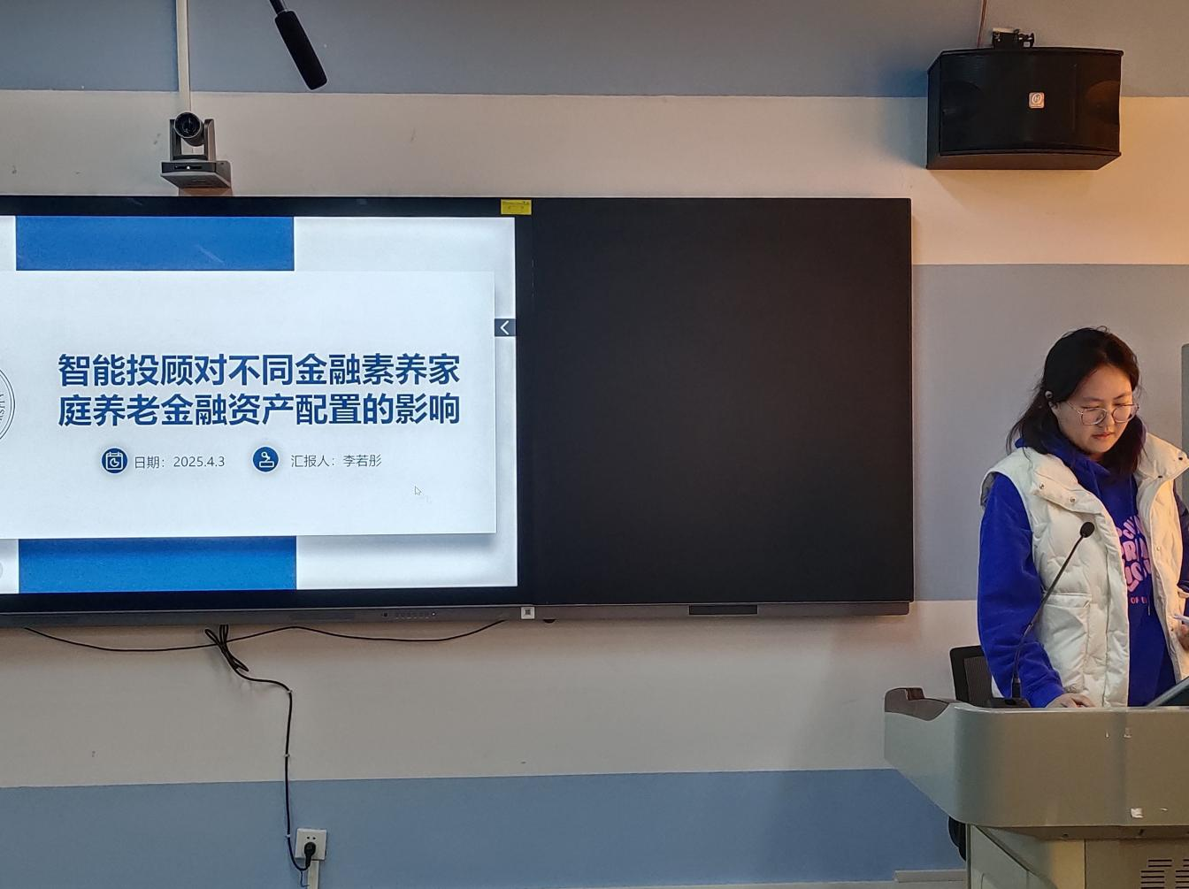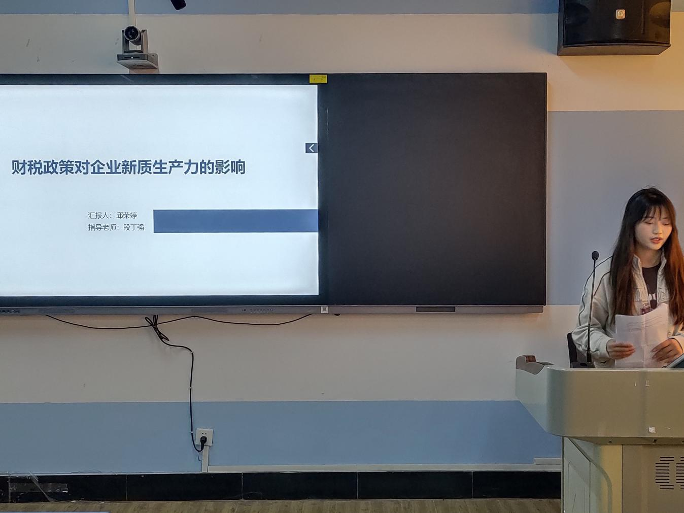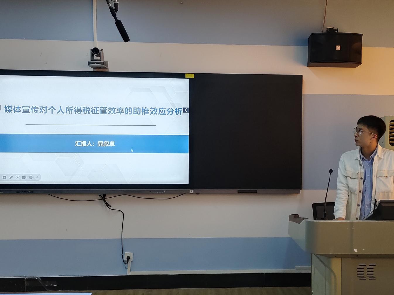 论坛上,五位主讲人依次登台,分别围绕近期学习研究成果进行汇报。邱荣婷同学以《财税政策对制造业企业新质生产力的影响及其作用机制》为题,通过理论分析与实证研究,揭示财税政策如何作用于制造业企业新质生产力。刘海燕同学以《数字普惠金融对产业链韧性的影响研究》为题,深入探究数字普惠金融如何作用于产业链韧性,并规划后续研究计划。晁叙卓同学以《“助推”还是“强制”?——行为视角下个人所得税合规率提升路径研究》为题,通过行为学分析,探寻提升个人所得税合规率的有效路径。袁瑞同学以《公共数据运营对地方财政可持续性的影响研究》为题,深入剖析公共数据运营模式,探究其对地方财政可持续性的作用及潜在影响。李若彤同学以《智能投顾对不同金融素养家庭养老金融资产配置的影响研究》为题,借助数据模型分析,揭示智能投顾如何影响不同金融素养家庭的养老资产配置决策。