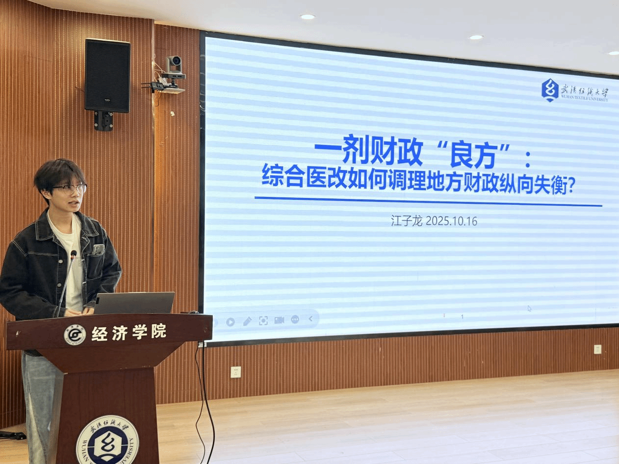 在论坛分享环节,五位主讲人围绕实践调研与学术研究主题展开精彩报告。杨琴同学以《民族特色技艺“西兰卡普”发展现状调研-暑期社会实践经验分享》为题,结合暑期民族地区实地调研,介绍“西兰卡普”的传承现状、市场需求与文化价值,既分享技艺传承亮点,也剖析人才短缺、传播有限等问题,并结合实践心得为同学们提供调研方法参考。江子龙同学以《一剂财政“处方”:综合医改如何调理地方财政纵向失衡》为题,聚焦地方财政纵向失衡,从综合医改背景与内容出发,分析其在优化财政支出、平衡央地财政关系中的作用路径,结合案例阐述政策效果,提供财政与医疗协同发展的学术视角。秦腾同学以《绿色信贷政策对高污染企业绩效的影响研究》为题,立足绿色金融趋势,围绕绿色信贷的约束与引导功能,结合企业财务数据与经营指标,实证分析政策对企业盈利能力、转型效率的影响,为完善绿色信贷机制、推动企业绿色转型提供数据支撑。李玉蕊同学以《耐心资本赋能新创企业韧性:企业风险投资和独立风险投资的差异化作用》为题,聚焦“耐心资本”对新创企业的价值,对比两类风险投资在周期、资源、退出机制上的差异,分析其在提升企业抗风险能力中的不同作用,为企业融资选择提供理论参考。倪代聪同学以《政府产业引导基金对企业创新绩效的影响研究》为题,围绕政府产业引导基金的目标与模式,结合企业专利、研发投入等指标,探究基金对企业创新能力的激励效果,分析其引导社会资本、推动技术突破的作用,为优化基金管理、提升创新效能提供思路。