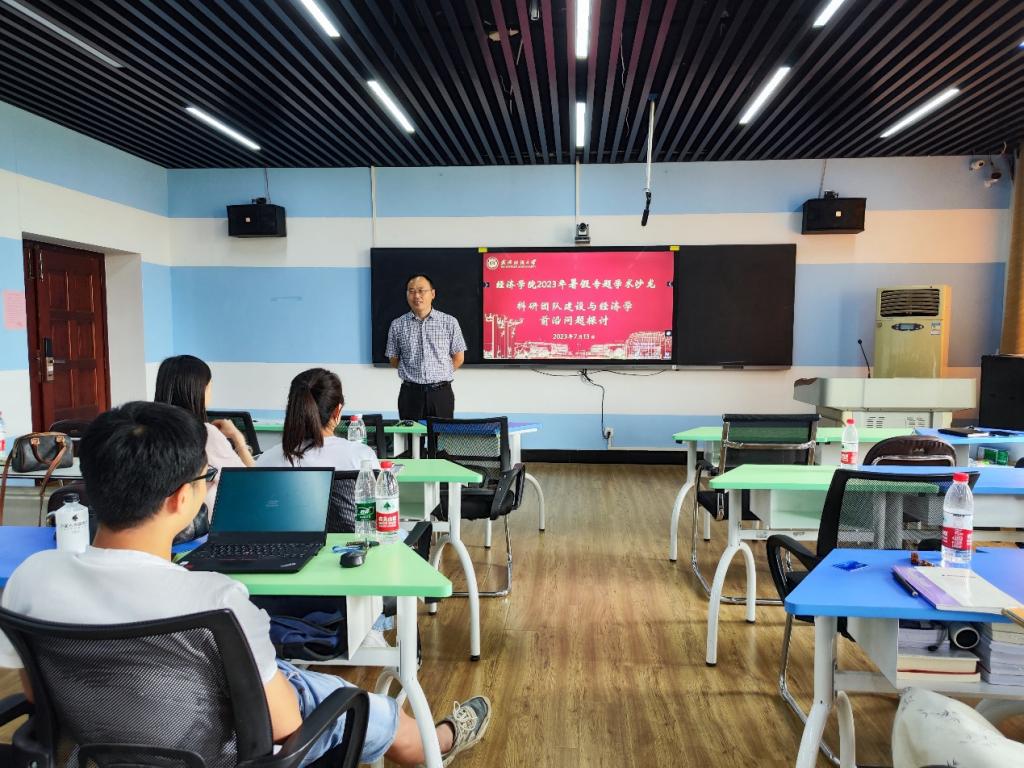 在接下来的经济学前沿问题探讨环节,刘欢、王文佳、熊晓涵和江露薇四位老师分别汇报了自己在学术研究方面的成果。他们分享了自己的研究课题、方法和结果,展示了他们在各自领域的深入探索和创新成果,为解决我国经济发展现实问题提供了切实办法。这些学术报告不仅充分展示了学院科研骨干的学术实力,也为其他老师的学术研究提供了参考和启发。