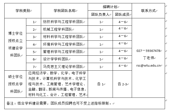 (一)学科团队负责人及成员招聘计划