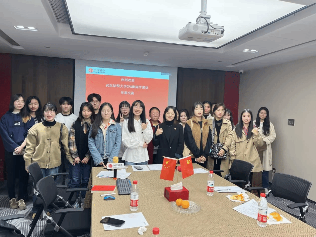 11月16日,金融学CFA方向班22级23级同学一行前往中信证券湖北分公司武汉天地营业部进行企业参访活动。此次活动帮助同学们丰富专业课程模块,鼓励同学们在实践中理解和转化专业知识,进一步清晰个人职业发展路径。中信证券分支机构市场总监肖芳、市场部康泽、周凌昊、苏雅丽,威廉希尔中文官网金融学CFA班运营人员一同组织参与了此次活动。