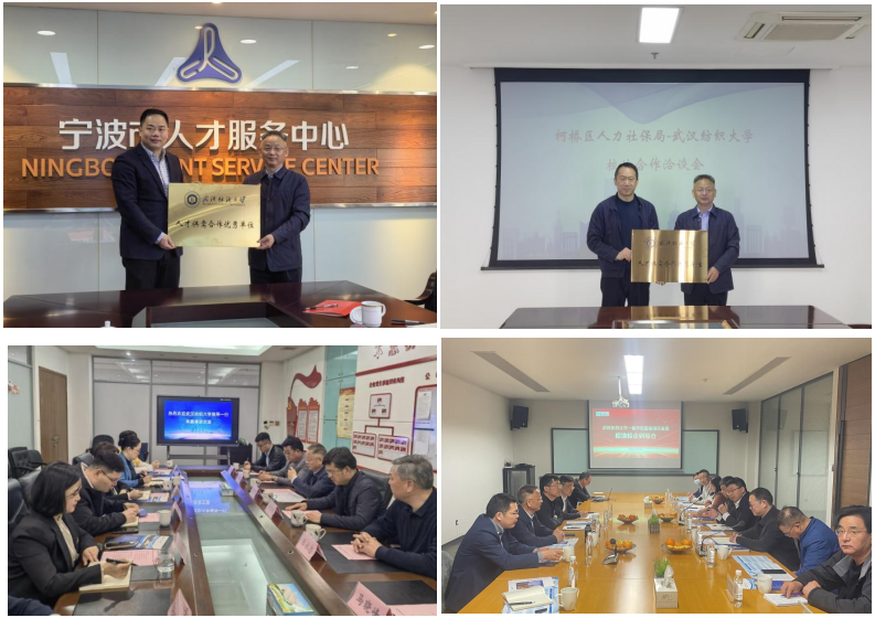 罗锦银一行先后与宁波市人社局、宁波市奉化区人社局、绍兴柯桥人社局和嘉兴市人社局座谈交流,当地校友会会长、部分企业代表、校友代表参加座谈。座谈会上,罗锦银深入了解了当地政府引才计划、人才优惠政策和当地的校友工作生活情况,他对当地人社部门一直以来对学校的关心和支持表示感谢,详细介绍了学校办学特色、学科建设、人才培养、科学研究、校企合作等情况。他表示,一是学校将依托人社部门、联合当地校友会,组织“准毕业生”到当地企业提前开展实习实践,加深对行业认同、对企业文化认同。二是精准服务企业,提前了解企业人才需求,精准推送就业学生信息,帮助企业在校揽才,开展其他合作。他指出,浙江纺织服装、数字经济、机械制造、生物健康等产业发达,与学校目前学科专业发展有较高的契合度,政府、高校、企业和当地校友会加强经常性的对接交流,有利于打通校地、校企、校友人才供应链,打造共赢发展的良好局面。座谈会上,学校与当地人社部门签订了人才战略合作协议并授牌“人才供需优秀合作单位”。