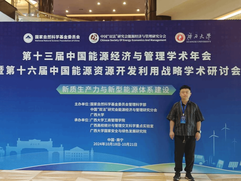10月19号,由国家自然科学基金委员会管理科学部、中国“双法”研究会能源经济与管理研究分会、广西大学联合主办、广西大学工商管理学院承办的“第十三届中国能源经济与管理年会”在广西·南宁举行。本次会议旨在交流近年来新质生产力和新型能源领域的研究成果和未来展望,增强学术同仁之间的合作交流,推动新型能源领域的发展。我校威廉希尔中文官网帅竞副教授、吴媛媛研究生参加本次大会,帅竞受邀做题为“中国光伏产业链安全风险评估与预测”的汇报。