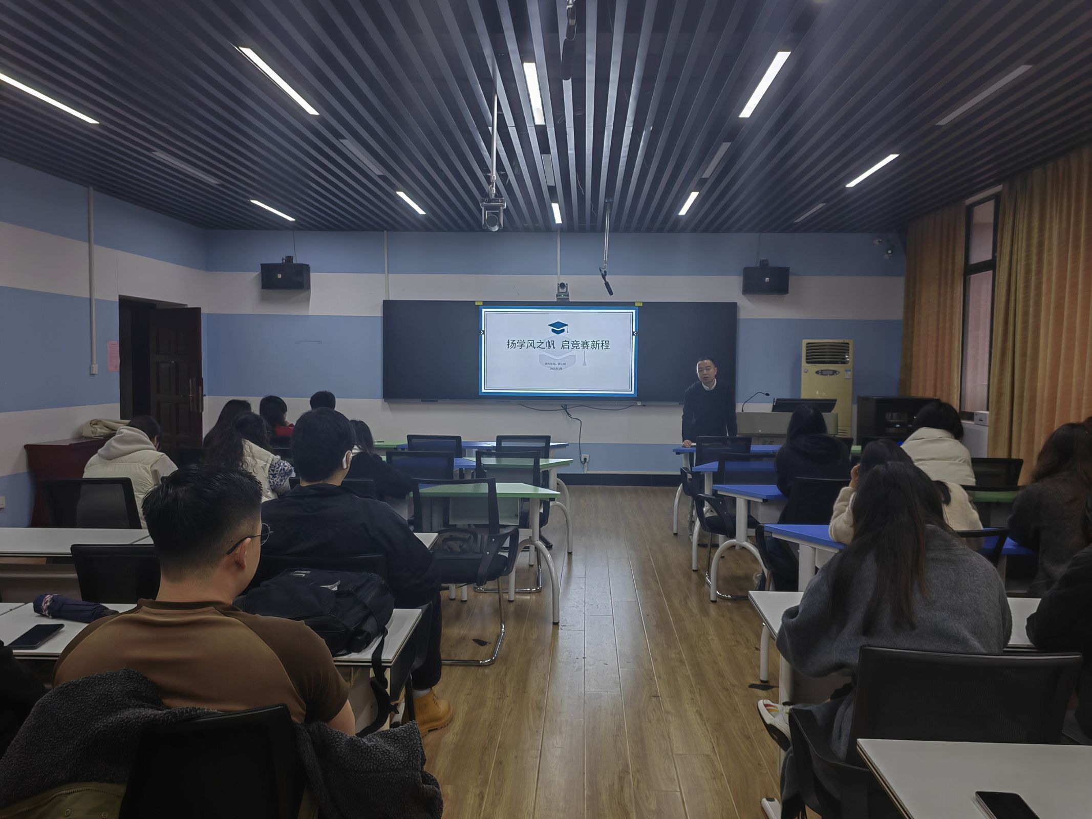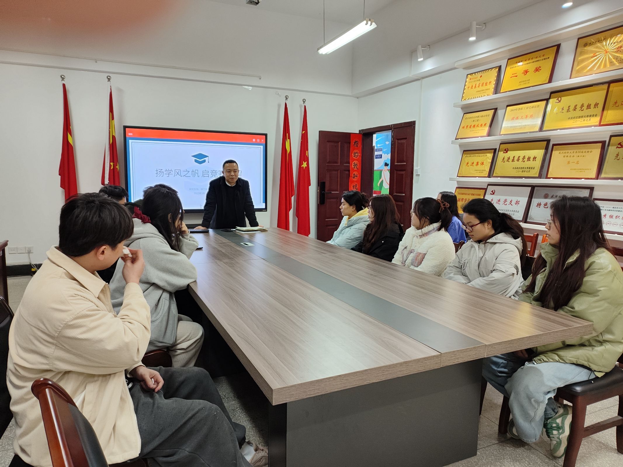 根据学校统一安排,3月2日晚,学院研究生辅导员、德育导师分别组织各研究生班级召开了“扬学风之帆,启竞赛新程”主题班会,学院全体研究生参加班会。
