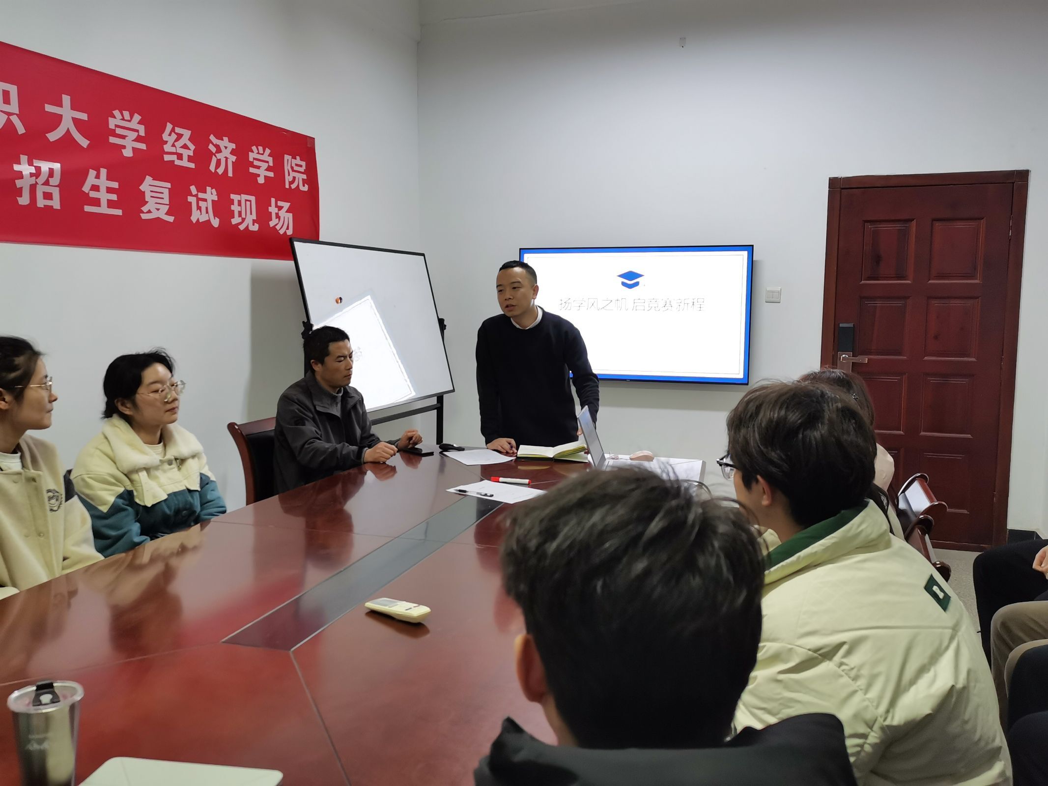 班会上,辅导员和德育导师们一一核清了学生在校情况,提醒同学们注意关注天气变化、做好个人保暖和健康防护,并结合PPT对中国研究生创新实践系列大赛进行了推介,勉励研究生们积极参加学科竞赛、学术交流等活动,在实践、实习中提升专业素养、夯实职业基础。