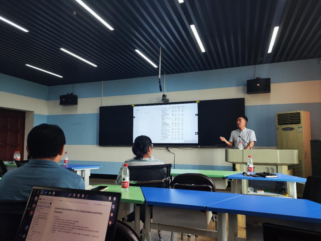 本次论坛邀请了澳大利亚国立大学经济学系副教授沈凯玲(Kailing Shen),进行题为《Gender Discrimination in Recruiting:Evidence and Policy Evaluation》的学术讲座,本次讲座由王滨院长主持,学院科研骨干教师与部分研究生参加了本次讲座。