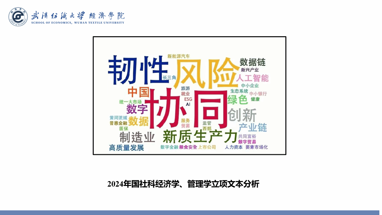 陈晨、王文佳博士从2024国社科申报过程的反思与总结、对已中项目的思考和感悟以及未来科研和项目申请规划三方面展开汇报。首先,针对2024年的国社科申请书,在前期成果、题目拟定、内容形式等方面进行总结。其次,通过对2024年国社科经济学、管理学立项标题的文本分析,提出自己在选题方面的看法与感悟。最后,阐述了未来拟申请的课题题目、个人科研计划和对学院学科发展的建议。