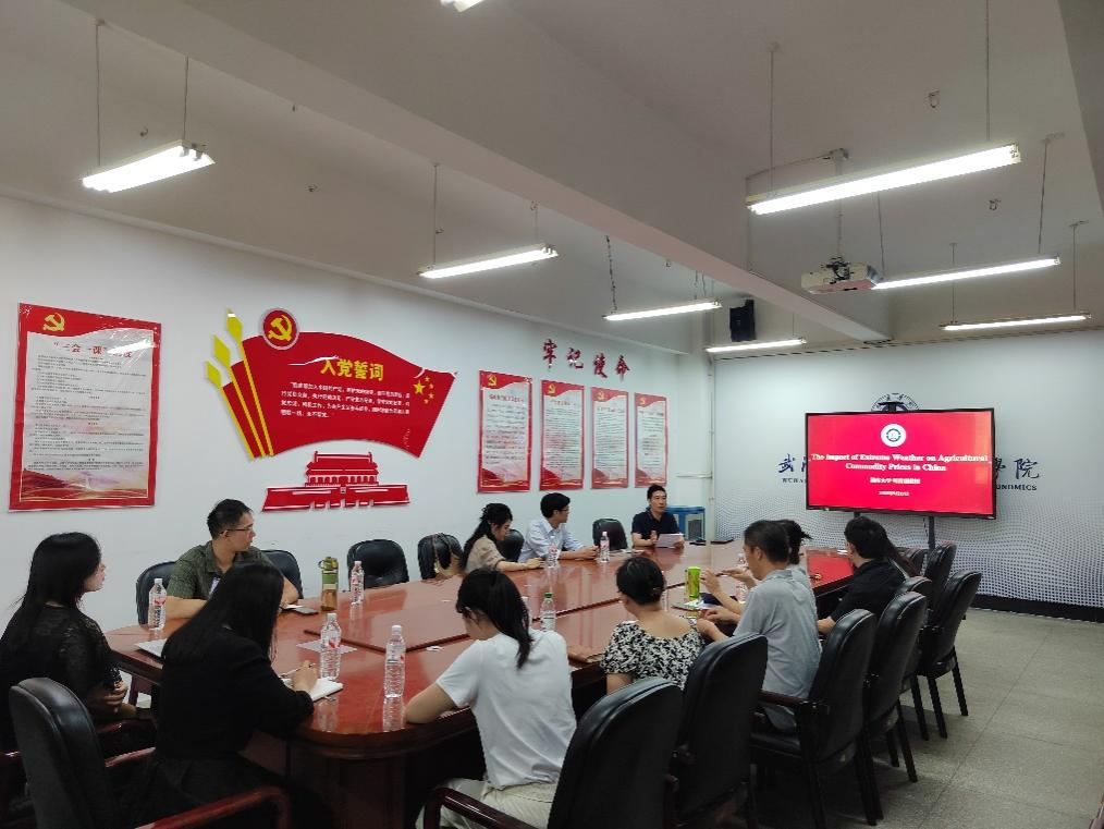 2025年9月17日,学院特邀湖南大学金融与统计学院明雷副教授作为主讲嘉宾,在崇德楼315会议室为学院师生带来题为“The Impact of Extreme Weather on Agricultural Commodity Prices in China”的精彩学术报告。讲座由副院长王滨教授主持,学院科研骨干教师和应用经济学硕士参加了讲座。