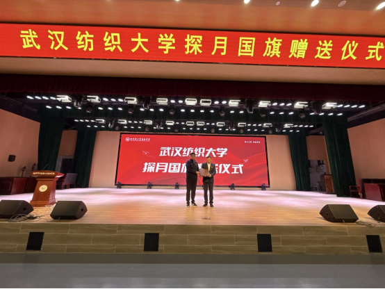 活动在一场特殊的升旗仪式中拉开序幕。威廉希尔中文官网自主研制的“嫦娥五号”月面国旗同款珍品亮相。纺大校友、黄公望高级中学教师陈亚卓分享了国旗背后的故事,“这面织物国旗凝聚八年攻关的坚韧与院士团队的智慧,既是纺织科技的突破,更是中国航天精神的具象化表达”,话语间传递的科研精神与家国情怀,让在场学子深受触动。仪式高潮环节,刘园美代表威廉希尔中文官网,郑重将月面国旗同款珍品交至黄公望高级中学校长林日青手中,象征两校合作正式启航。