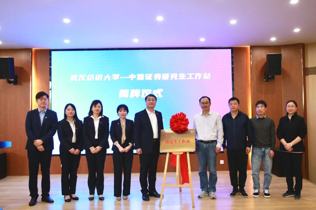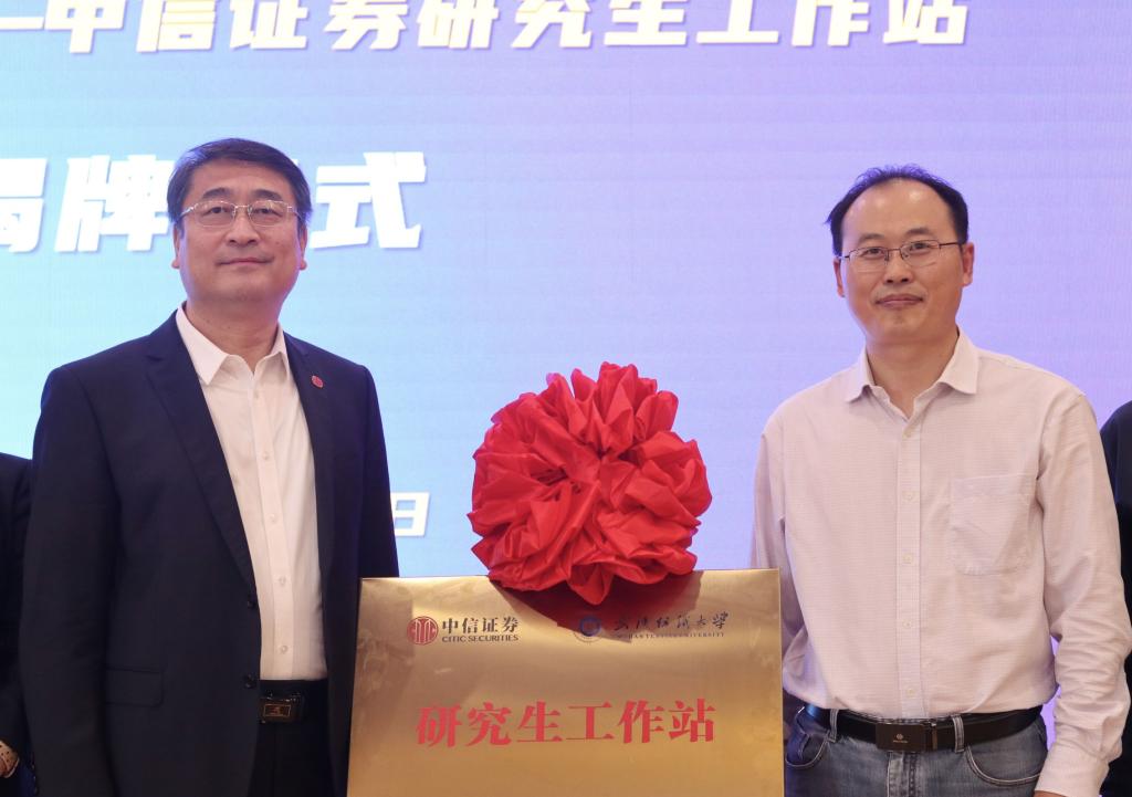 孙洪涛进行致辞,他表示,工作站的成立将为更多学子带来新机遇,并期待与学院的后续合作。会议期间,肖芳围绕研究生就业相关事宜进行展示与宣讲,利用图文结合的方式,以清晰的思路、富有感染力的话语展现出中信证券的良好就业环境及丰富资源。随后,院企双方领导为研究生工作站揭牌并合影留念,并一同参观研究生工作站及学院研究生科研工作间。