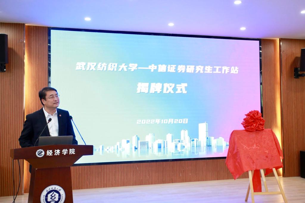 为创造优秀的研究生就业条件,10月20日下午,学院于崇德楼T301举行“威廉希尔中文官网—中信证券研究生工作站”揭牌仪式。学院班子成员及全体教职工参与揭牌仪式,本次仪式出席嘉宾有中信证券湖北分公司总经理孙洪涛,中信证券武汉天地营业部总经理黄颖,营业部区域总监肖芳,营业部客户经理舒悦、余文琪。仪式由院长段丁强主持。