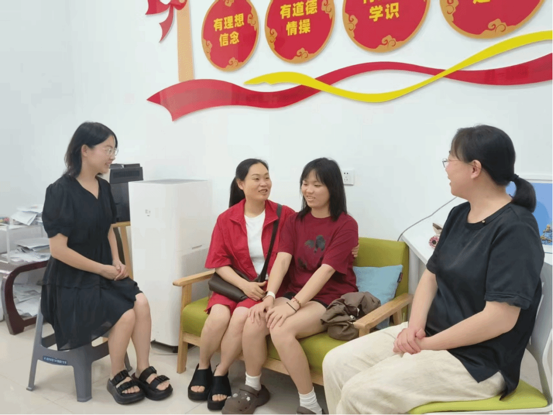 李静宇、22级辅导员马晓雪走访留校备考的小张同学,与专程从外地赶来的家长围坐座谈。老师们详细向家长介绍了小张同学在校期间的学习成绩、社会实践表现及综合素质发展情况,对其勤奋刻苦的学习态度和积极向上的精神面貌给予充分肯定。当提及她与双胞胎姐姐约定报考南京地区高校研究生的目标时,李静宇鼓励道“暑期是备考黄金期,要合理规划节奏,遇到难题随时找我们”。马晓雪还从复习方法、心理调适等方面给出具体建议,家校携手许下“助力姐妹俩金榜题名”的约定。