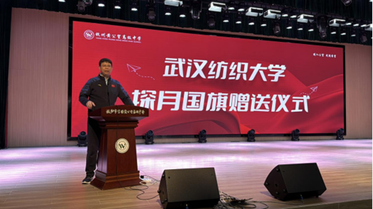 讲座中,刘园美以黄鹤楼承载的千年荆楚人文底蕴为切入点,将威廉希尔中文官网六十余年的办学历程与育人传统娓娓道来。他重点讲述了学校在纺织科技领域的持续探索,从“嫦娥五号”“嫦娥六号”月面国旗的研制突破,到绿色纺织材料的创新研发,生动阐释了学校在传承中创新、在融合中发展的办学路径。通过对比传统纺织与现代航天纺织的技术传承,刘园美进一步阐释了“科技赋能传统、人文滋养创新”的核心办学理念,让师生们在了解技术成果的同时,更感受到其中蕴含的科研精神与家国情怀,真切体会到纺大“科技+人文”的双重魅力。