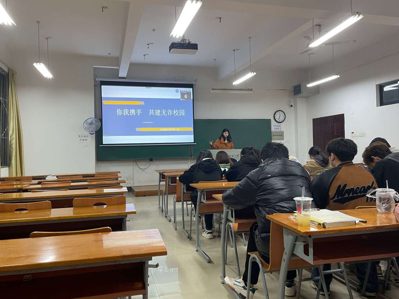 全体班主任一一点名,确认所带学生状态,带领同学们认真学习“两会”相关知识。引导同学们认识到电信诈骗就在我们身边,不能麻痹大意、掉以轻心,组织同学们观看防范网络电信诈骗视频。对学校“五四评优”工作进行解读和宣讲,以激励广大团组织和团员、青年学生比学赶超、创先争优,充分发挥先进典型示范作用。