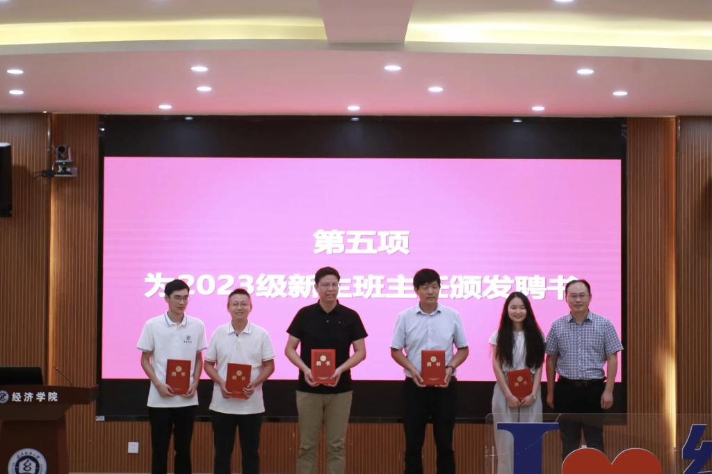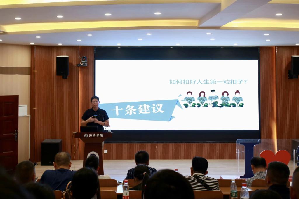 为了更好的帮助新生适应大学学习和生活,引导他们做好学业规划和职业生涯规划,帮助他们成人成才成为最好的自己,学院为23级新生聘请了年富力强的青年博士、学校心理健康中心、研究生工作部的老师以及有丰富学生工作经验的老师来担任班主任,院长段丁强为23级新生班主任颁发聘书。随后,为了增强新生及家长对大学生活适应的了解、认识大学生的心理动态,从而更好地帮助新生适应接下来的学习征途,来自学校心理健康中心的23级新生班主任代表赵宝富老师分享了“从高中到大学的‘心’起点—大学生心理适应性交流”。