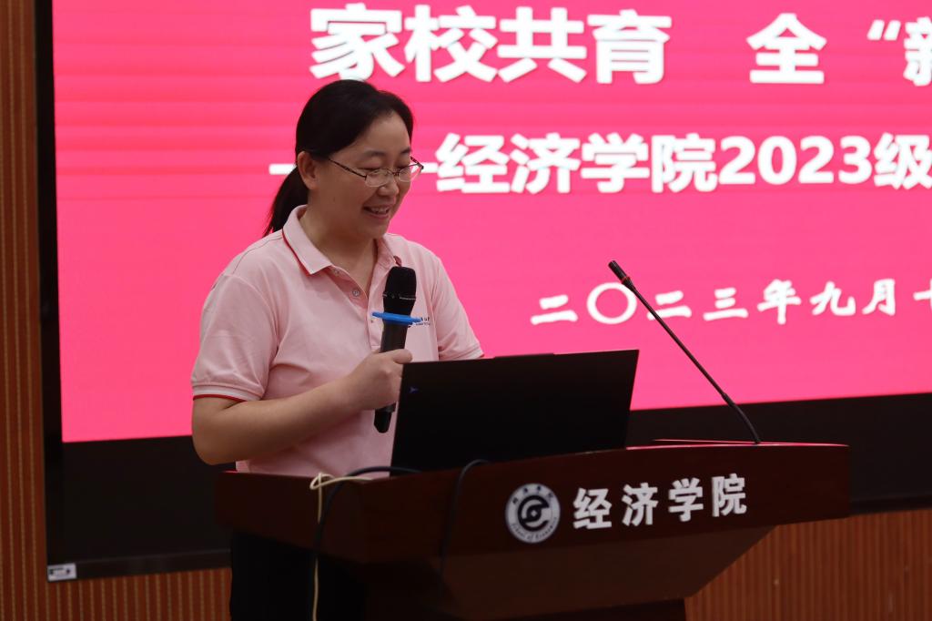 新生辅导员汪伦介绍了年级及日常管理情况,使家长对新生班主任和孩子的大学日常生活有了一定了解,对孩子未来的生活更加安心、放心。