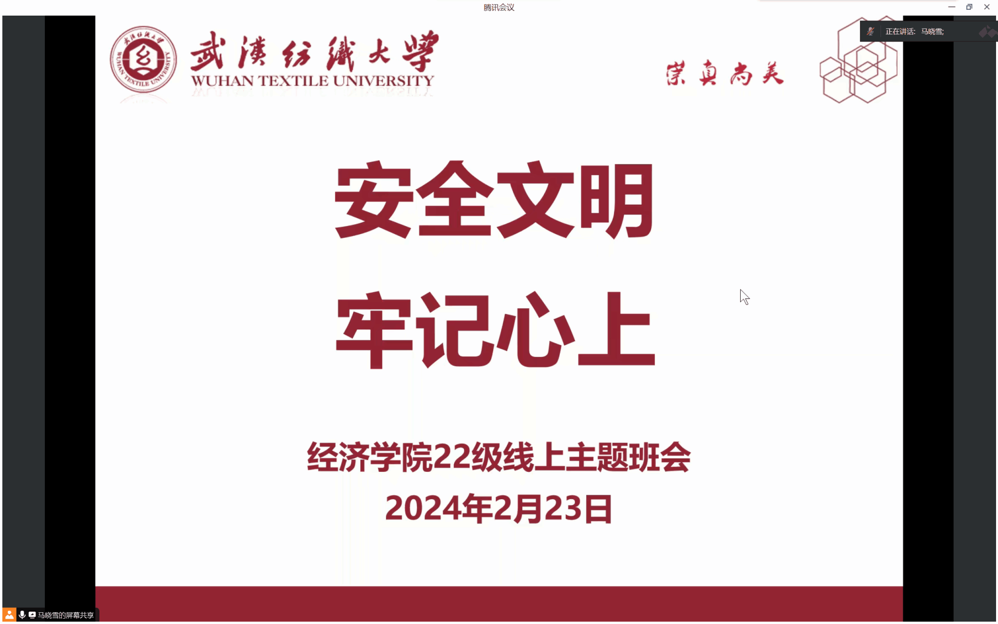 为落实好学校关于春季开学的有关工作要求,确保学生安全有序返校,2月22日至23日,威廉希尔中文官网组织召开“安全文明牢记心上”线上主题班会,重点强调新学期开学报到时间及返校前后安全等工作。