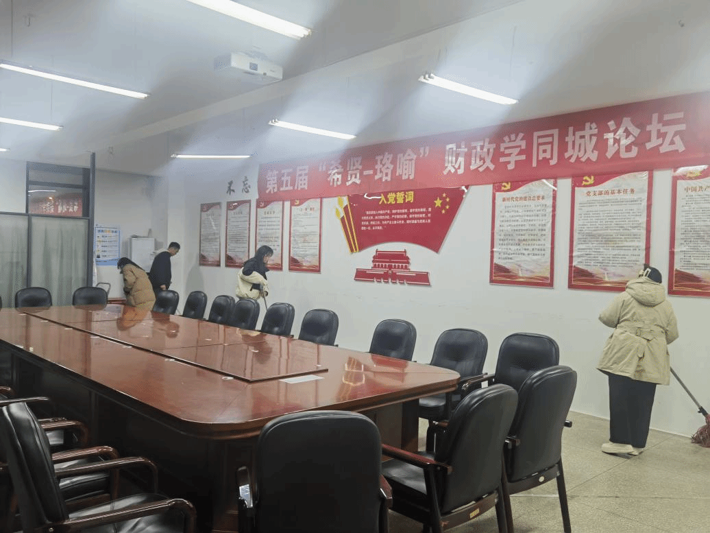 为营造保护环境的良好氛围,学院组织志愿者对“红色先锋”一站式服务社区公共空间、学院报告厅、会议室、教师工作间等场所认真仔细地进行了清洁打扫,维护美好的校园环境。干净整洁的环境可以有效预防疾病的传播,营造清新安静的氛围,为学生的学习生活提供了有力保障。在共同参与卫生打扫活动中,学生不仅增进了彼此之间的默契与友谊,还在亲身实践中感悟到“众人拾柴火焰高”的团结意识,弘扬了奉献、友爱、互助的志愿服务精神。