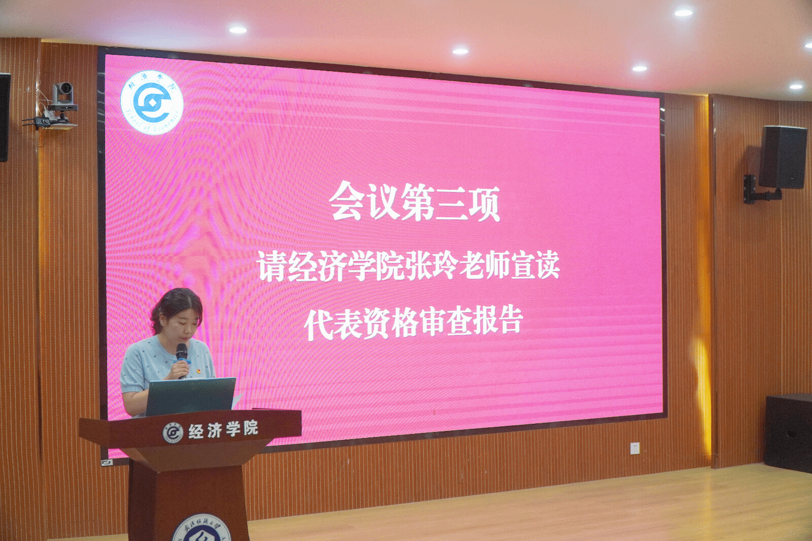 会议伊始,全体师生奏唱国歌。张玲宣读代表资格审查报告,她表示全体学生应继续夯实团学组织、拓展团属阵地、创新团建活动。