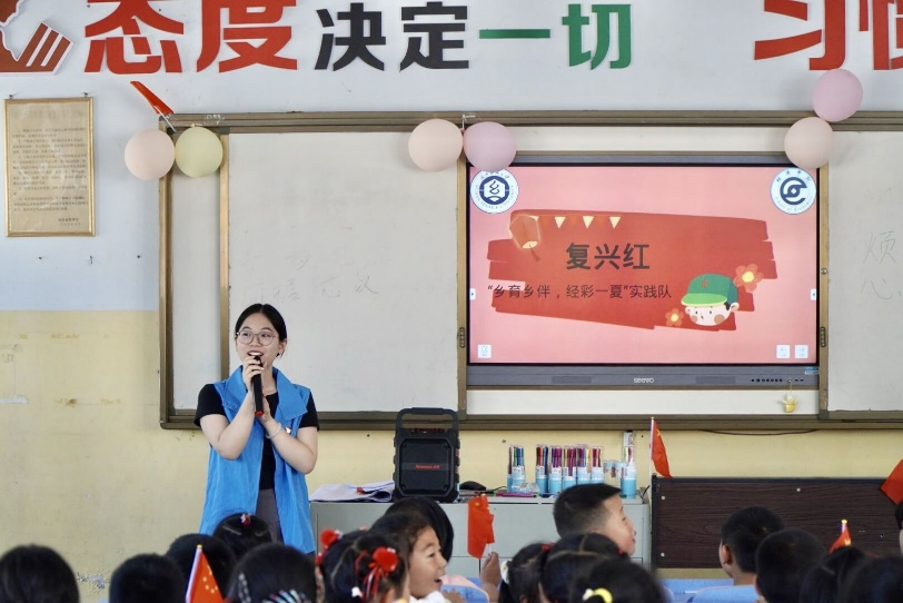 伴随着悠扬的乐曲,一群可爱的孩子正摇动着手中的五星红旗,歌唱《唱支山歌给党听》……这一幕,发生在建始县高坪镇望坪希望小学一间正在上课的教室里。6月30日,为庆祝中国共产党成立102周年, 弘扬伟大建党精神,传承优秀红色基因,增强中小学生爱党爱国之情,威廉希尔中文官网 “乡遇乡伴,‘经’彩一‘夏’”暑期志愿服务队在该小学组织开展“复兴红”主题教育思政课。