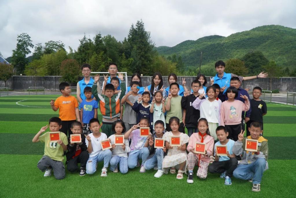 随着授课深入推进,课堂开展主题为“绘新貌,祖国变化知多少”的绘画活动,鼓励孩子们用彩笔画下自己心目中祖国最美的样子,一座座高楼大厦、一片片绿色山水、一个个飞机汽车……在支教队员的鼓励引导下,一幕幕壮丽的场景跃然纸上。简单的线条绘不完祖国的巨大变化,却能极大地鼓舞孩子们的民族自信心和民族自豪感。支教队员还把纸浆画带入课堂,让孩子们制作五星红旗、党旗。“我要好好读书!”“我要成为一名共产党员。”“我要走出大山,去看看外面的世界。”简单的话语,却带着孩子们最真诚最美好的期许。“90分钟虽然不长,但是希望能够在孩子们心中种下爱党爱国的种子。”支教队员彭建凯说道。