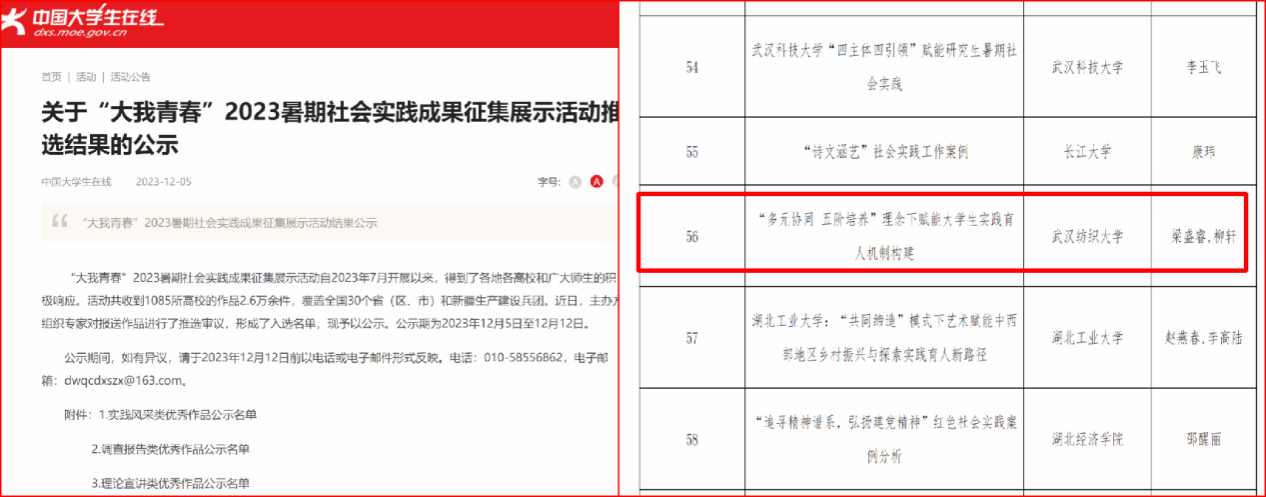 近日,威廉希尔中文官网“青春护农”实践团队分别获批教育部中国大学生在线“大我青春”2023年暑期社会实践优秀工作案例、湖北省2023年“三下乡”社会实践优秀团队两项荣誉。