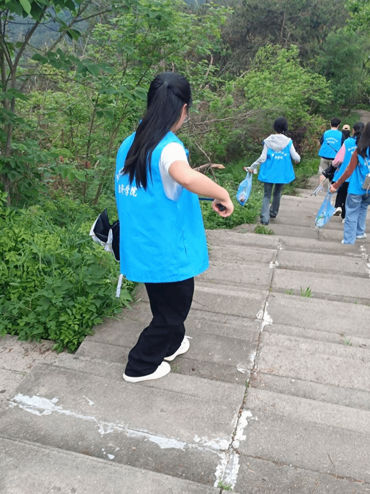 18日下午,志愿者们按时在预定地点集合,身穿经院蓝色志愿者马甲,携带一次性垃圾袋和清洁工具,统一沿预定路线出发。他们在徒步的过程中,仔细搜寻道路两旁、公园内以及其他公共场所的垃圾,统一回收进垃圾袋,以便后续处理。