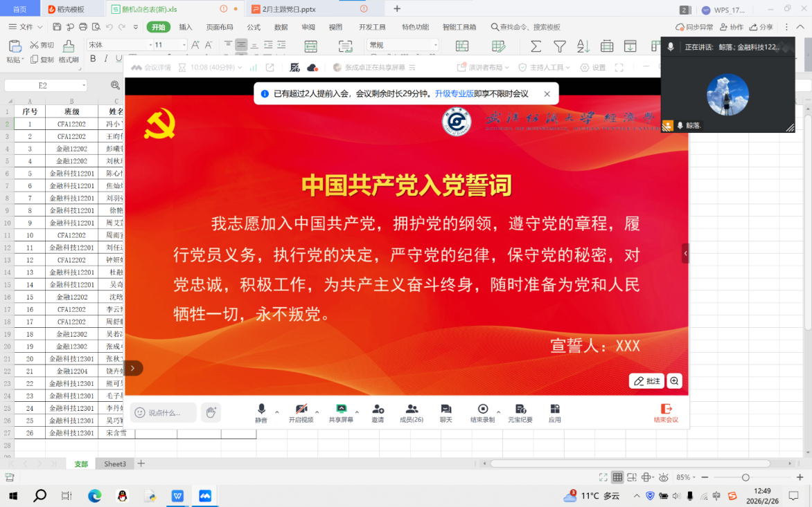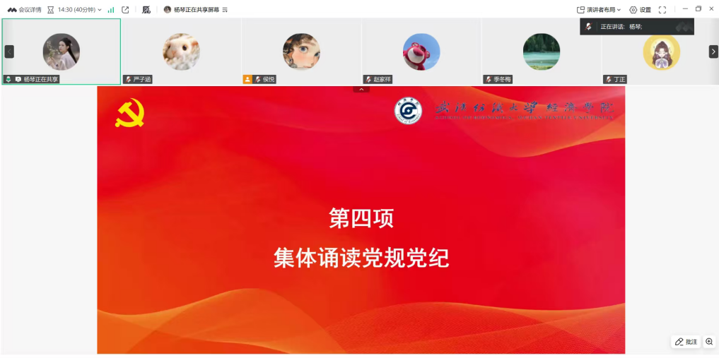 为进一步巩固拓展主题教育成果,深入学习贯彻党的二十届四中全会精神以及习近平总书记系列重要讲话,引导学生党员强化理论武装、锤炼党性修养,2月25日至27日,威廉希尔中文官网各党支部分别于线上组织开展2月份主题党日活动。学院全体学生党员及部分教工党员参加,各党支部书记主持会议。